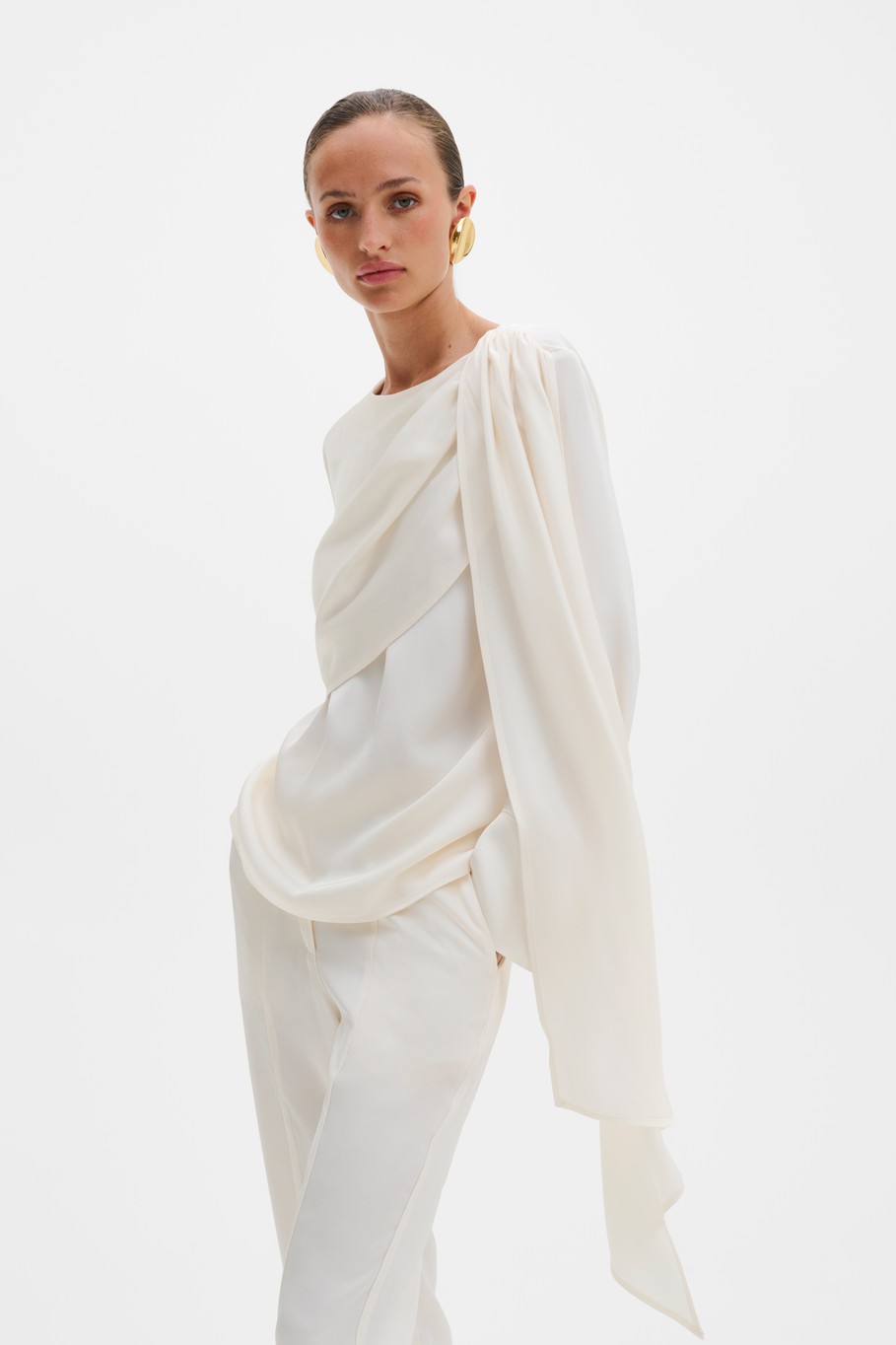 Pikkade varrukatega pluus drapeeritud esiosa ja keebi detailiga. Melandy pluus sobib suurepäraselt tööle kontorisse, õhtusöögile või pidulikule üritusele.